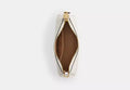 Its structured design features a secure zip-top closure that opens to a fabric-lined interior with a multifunction slip pocket and two built-in card slots for streamlined organization. Despite its sleek proportions (approx. 9.5″ L × 6″ H × 3″ W), it offers ample room for your phone, wallet, keys, and other daily essentials.