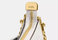 Dual carry options make it effortlessly versatile — the short top handle provides a chic hand-held look, while the detachable, adjustable strap allows for shoulder or crossbody wear. The soft white and chalk tones, highlighted by subtle gold hardware, create a clean, polished aesthetic perfect for both daytime and evening looks.