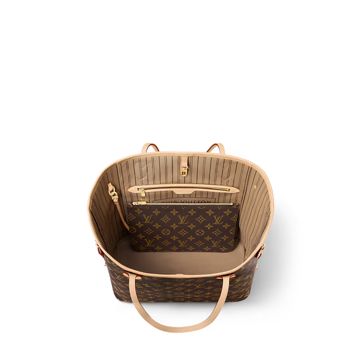 Elevate your accessory collection with the Neverfull MM in Beige—an elegant, spacious tote designed to balance style and everyday functionality. Crafted from premium monogram canvas with natural cowhide trim, this bag features side laces that cinch for a sleek silhouette or loosen for a more relaxed look. Slim dual handles fit comfortably over the shoulder or arm for ease of carry.