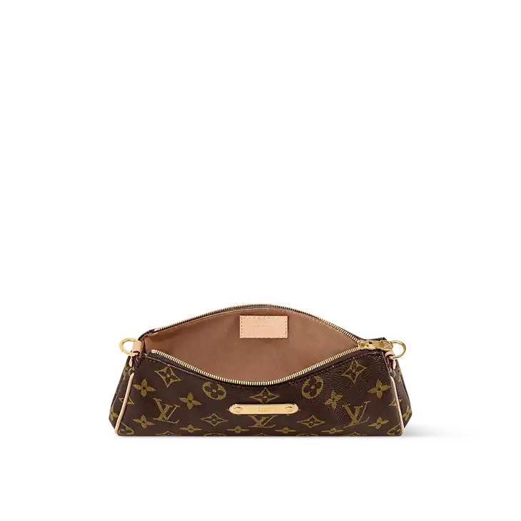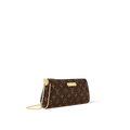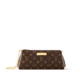 The Pochette Eva is crafted from signature monogram coated canvas with contrasting natural cowhide-leather trim and features a textile lining for a refined finish. Gold-toned hardware accentuates its sleek zip closure and removable chain, offering wristlet or crossbody style versatility. The spacious main compartment easily fits everyday essentials—think smartphone, compact wallet, keys, and small makeup items—while maintaining a polished silhouette. With dimensions of 10.6 × 4.3 × 2 inches, this elegant pochette strikes the perfect balance between form and function.